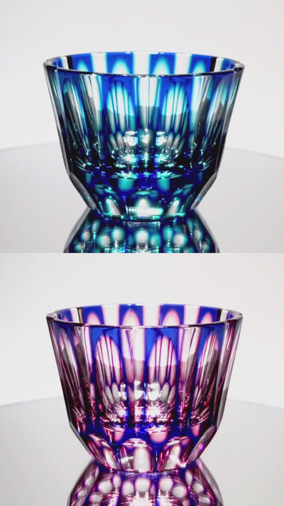 Crafted from our original glass material exclusively for Tenma Kiriko, this glass is inspired by a blooming lotus flower, or renge. Its shape and intricate cuts on the dual-layered colored glass create a stunning two-tone gradient, resembling a lotus in full bloom.